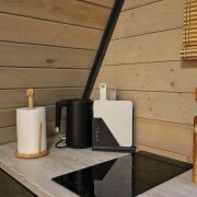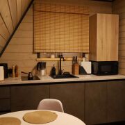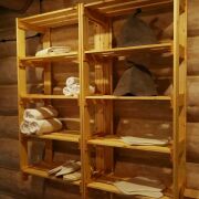 Это строение состоящие из 3- отдельных номеров. 1-й это хоз помещение склад в нем стелажи для хранения всего необходимого для обслуживания домов, стиральная машина, сушильная машина, гладильный пресс для постельного белья и полотенец