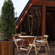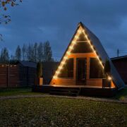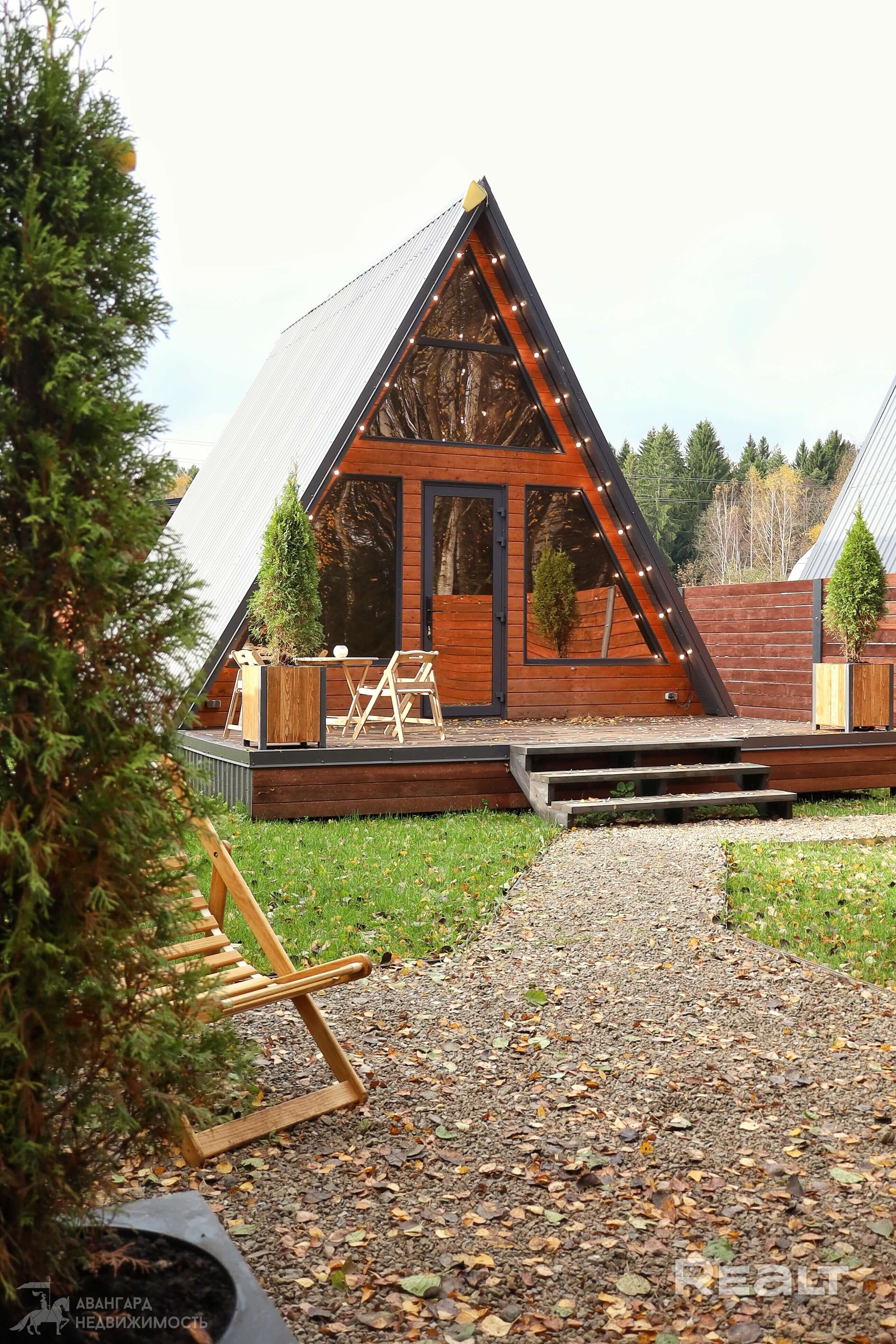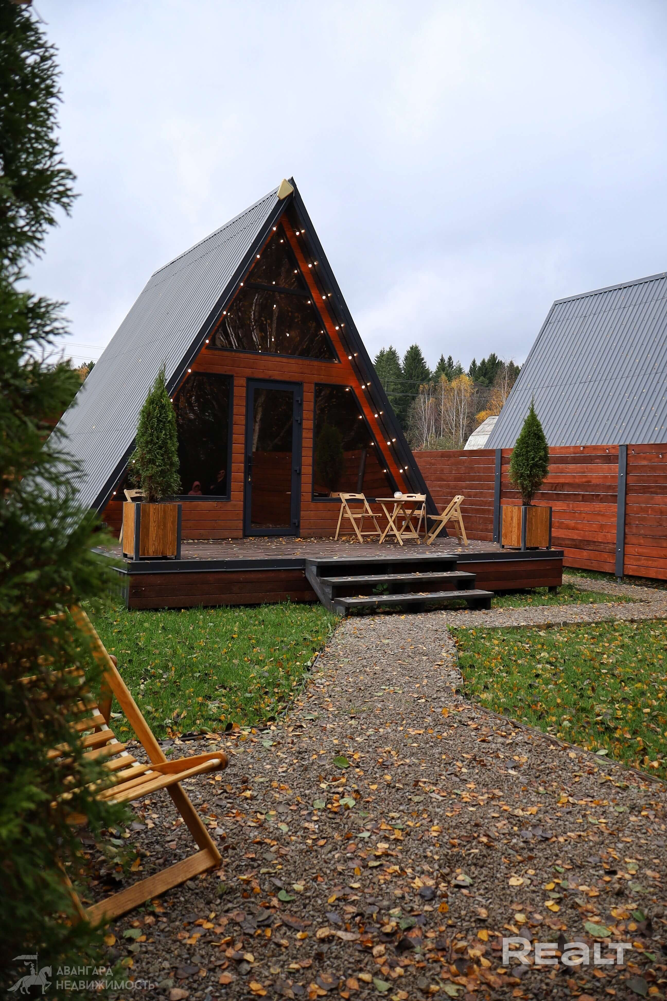 На территории 19 соток находится 2 одинаковых дома А-freim, полностью готовых для проживания с мебелью, посудой, постельным бельем, установлены кондиционеры (сплит системы), теплые полы в ванной, на входной двери электронные замки( ключ, отпечаток пальца, код), телевизоры, холодильники, чайники, встроенная варочная поверхность, есть вода, канализация, электричество. ит.д. террасная мебель, мангальные зоны и шампура, решетки, казаны. Посеян газон. Сделано уличное освещение из ретро лампочек как на доме так и по периметру участка. Дома полностью одинаковые. По 50 кв.м. Дома зонированы друг от друга красивыми заборами.