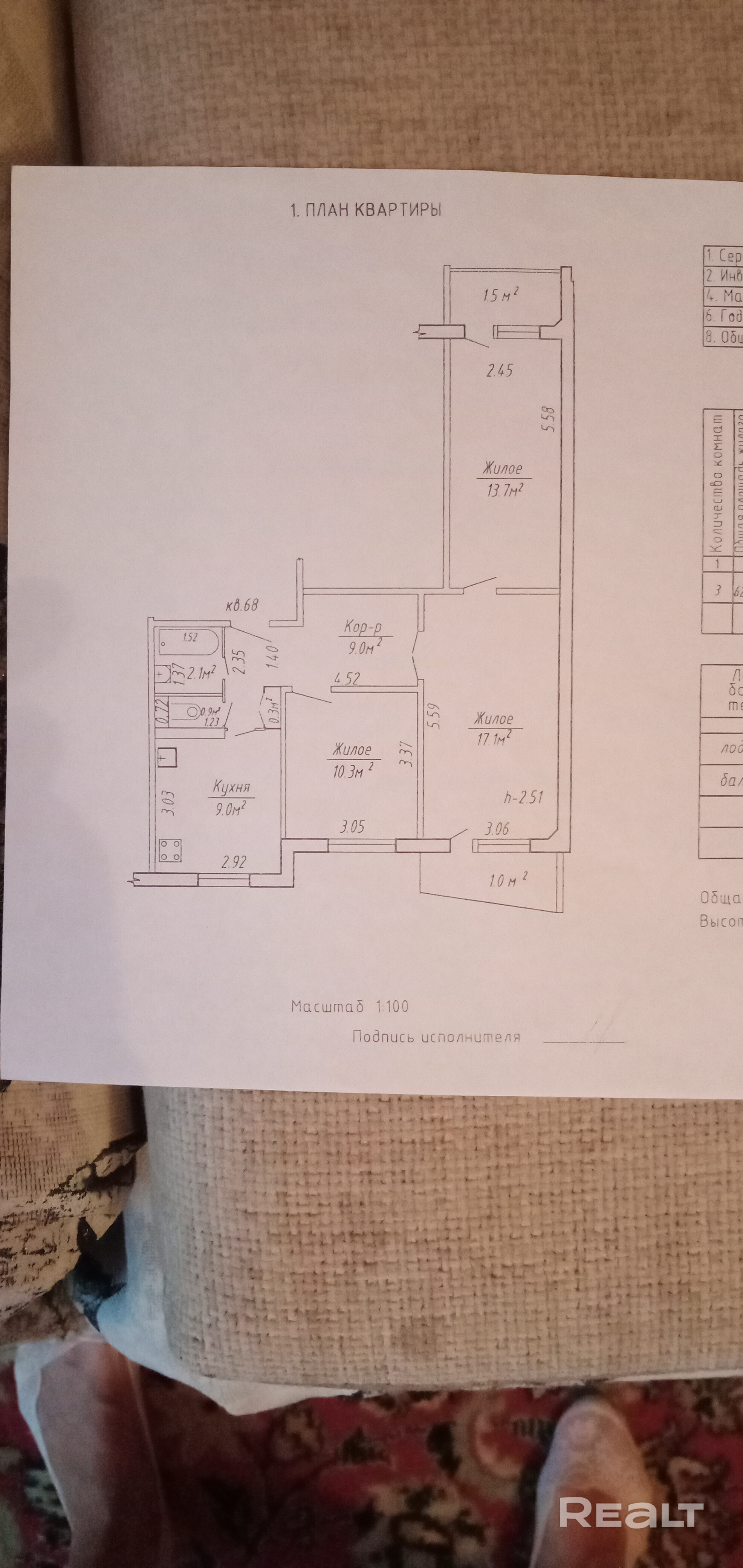 - Площадь жилая