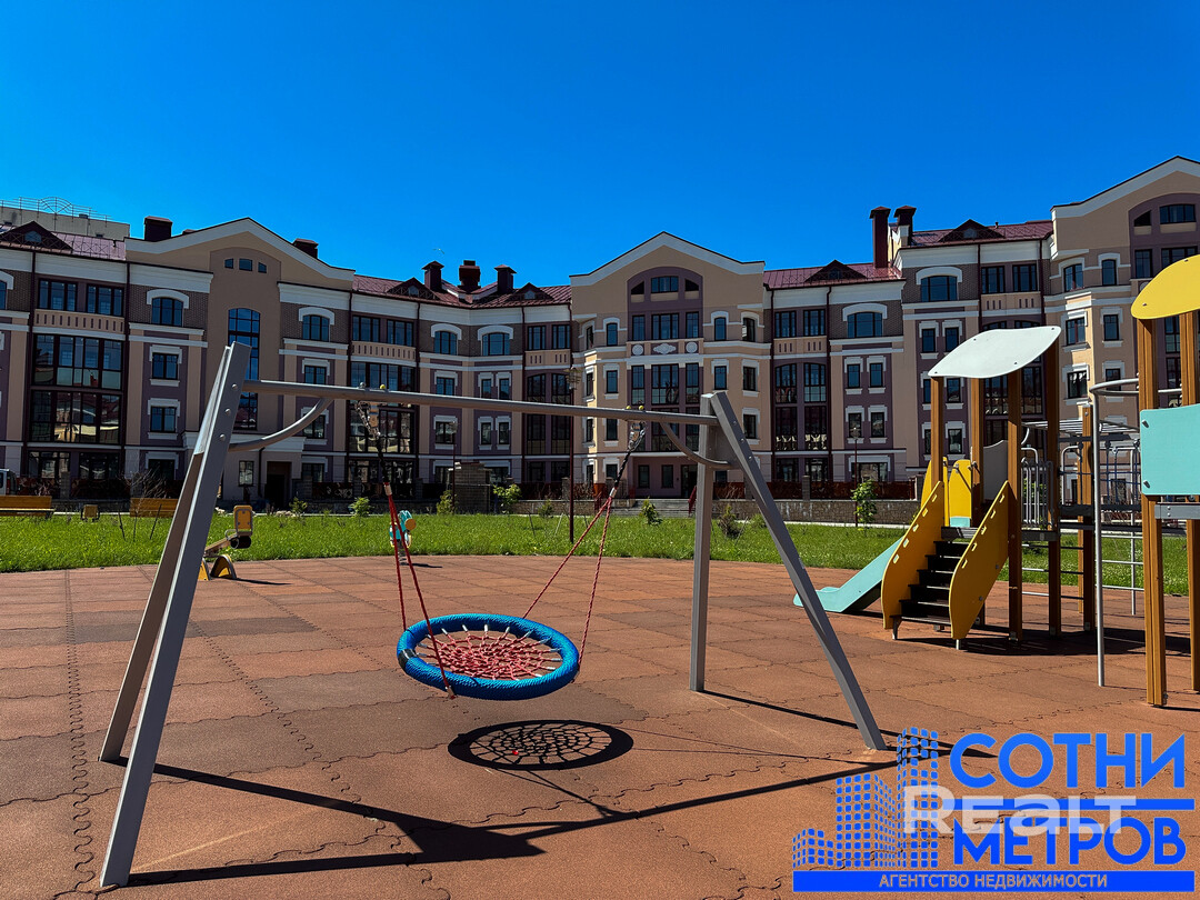 Просторная закрытая дворовая территория с собственной детской площадкой для детей разных возрастов, с комфортными местами отдыха, озелененной территорией. Дворовая территория огорожена забором, функционирует система видеонаблюдения и систем доступа на территорию.
