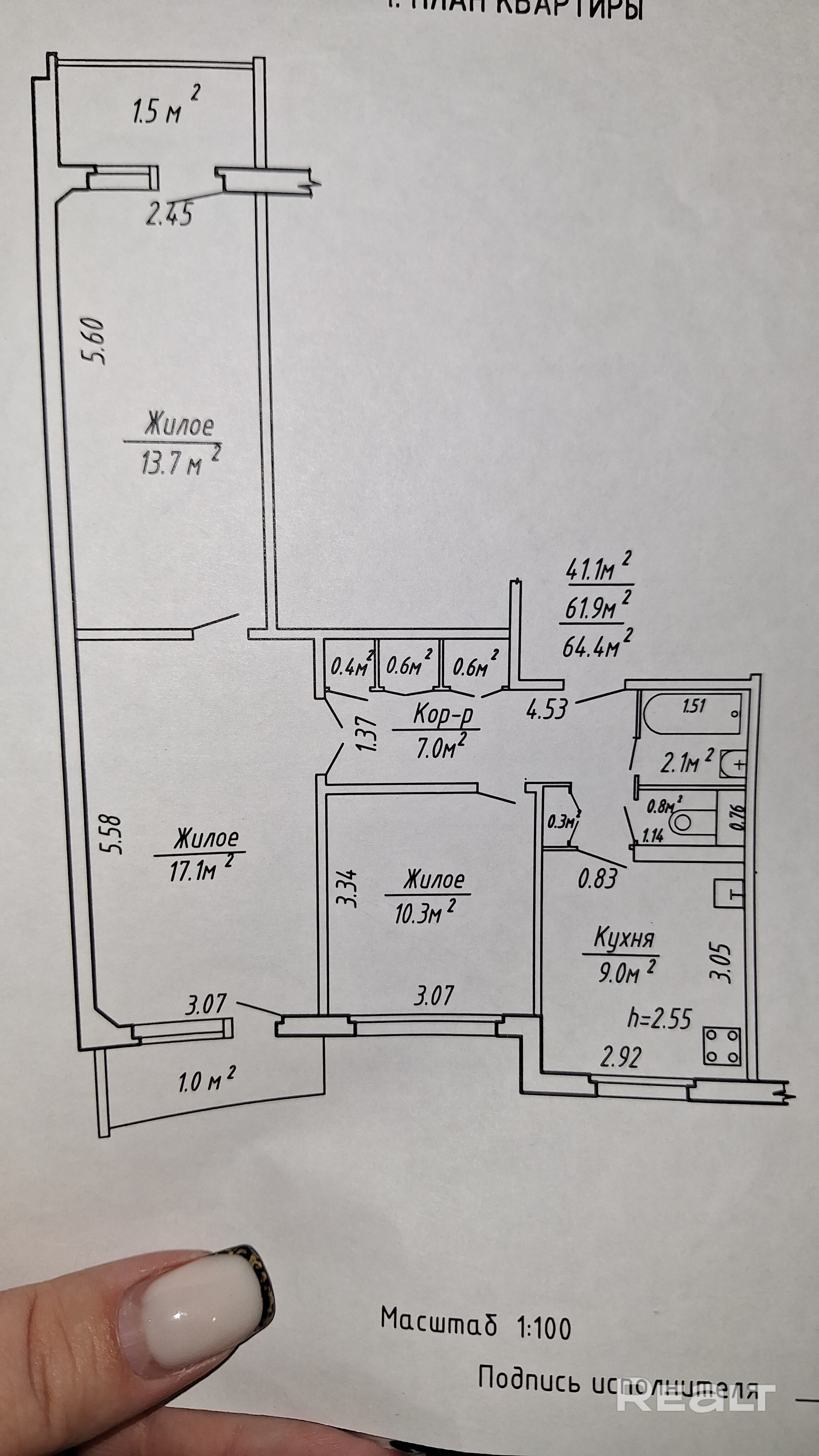Купить 3-комнатную квартиру, г. Полоцк, ул. Вологина, 374