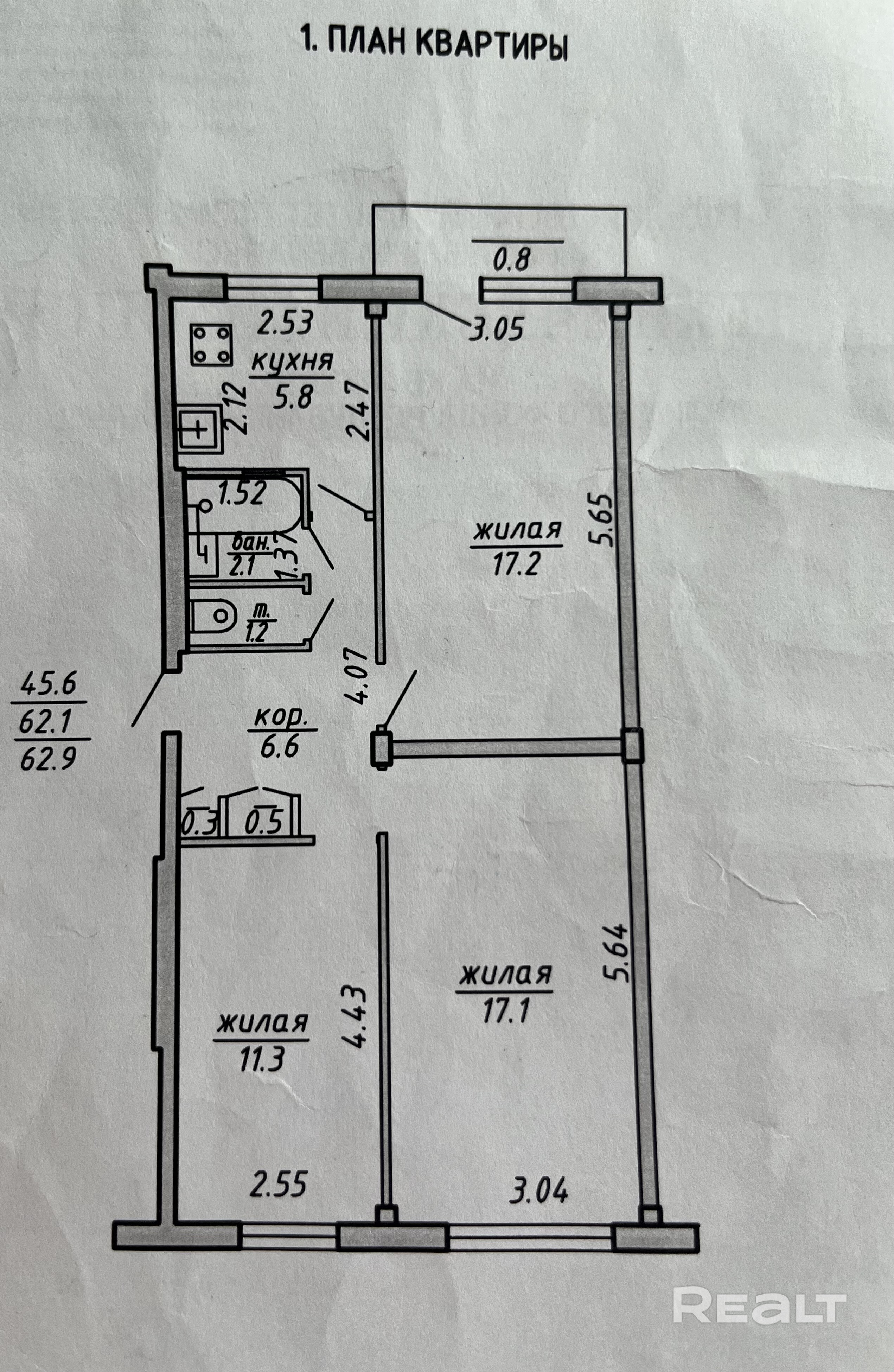 62.9 м²