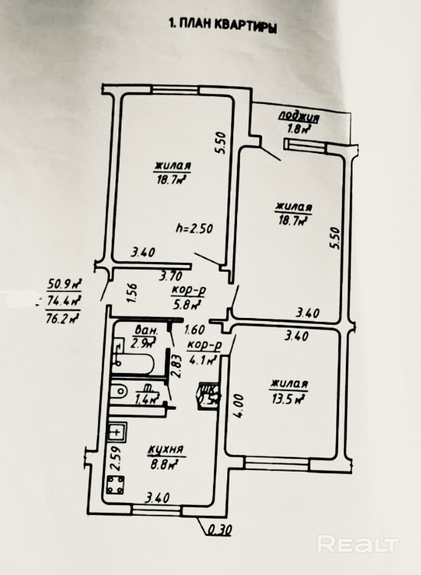Общая площадь 76.2 м