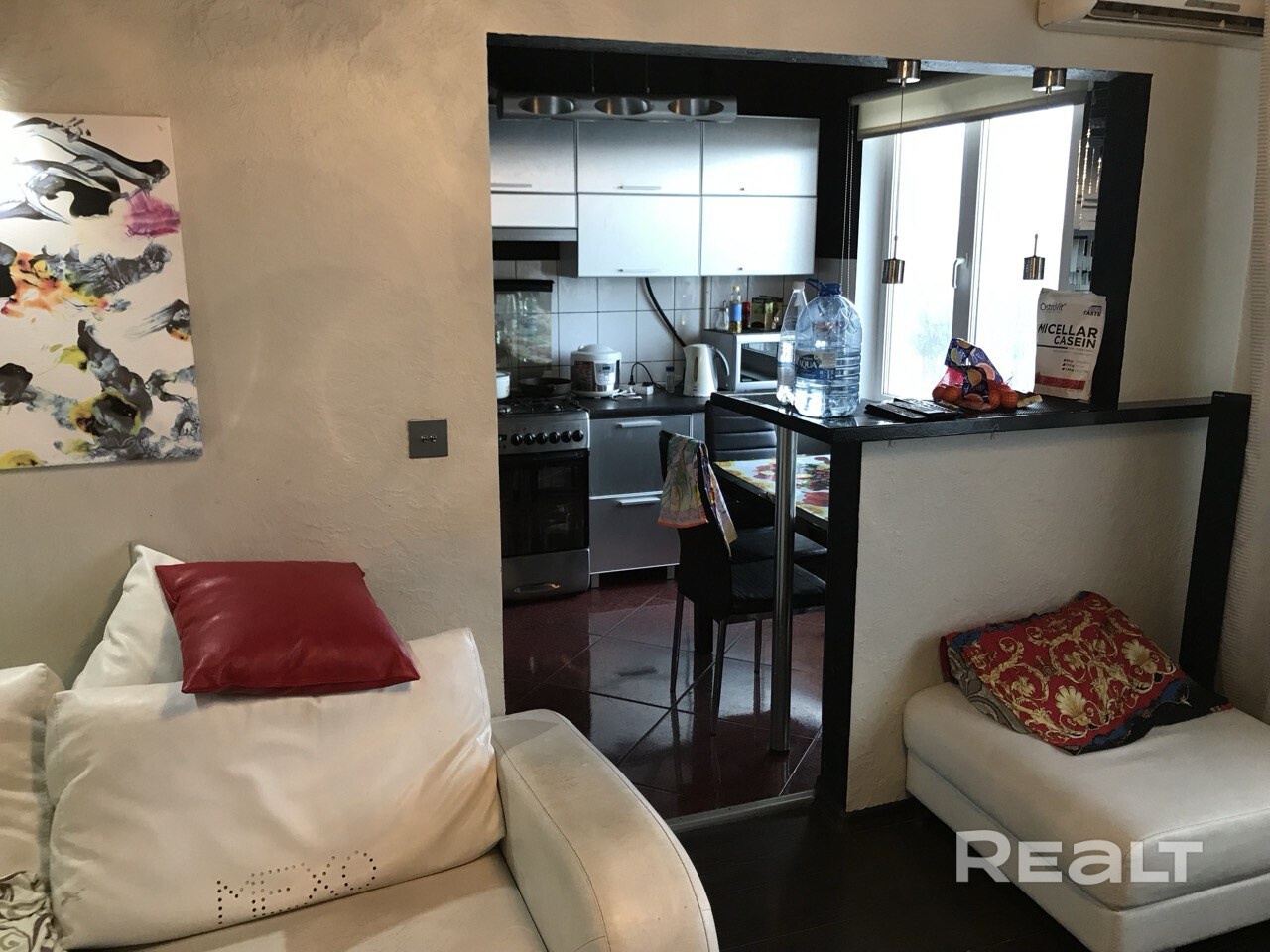 Продается частично меблированная четырехкомнатная квартира с узаконенной перепланировкой. Седьмой этаж в девятиэтажном панельном доме. Угловая стена утеплена термошубой, холодных комнат нет. Совмещенный санузел. Совмещенная кухня с залом. Перенесен вход в малую комнату. Пластиковые стеклопакеты в каждой комнате. Два кондиционера. Два утепленных балкона, плюс один балкон совмещен со спальней. Большие и удобные шкафы купе. В доме недавно был произведен кап ремонт, заменены коммуникации.