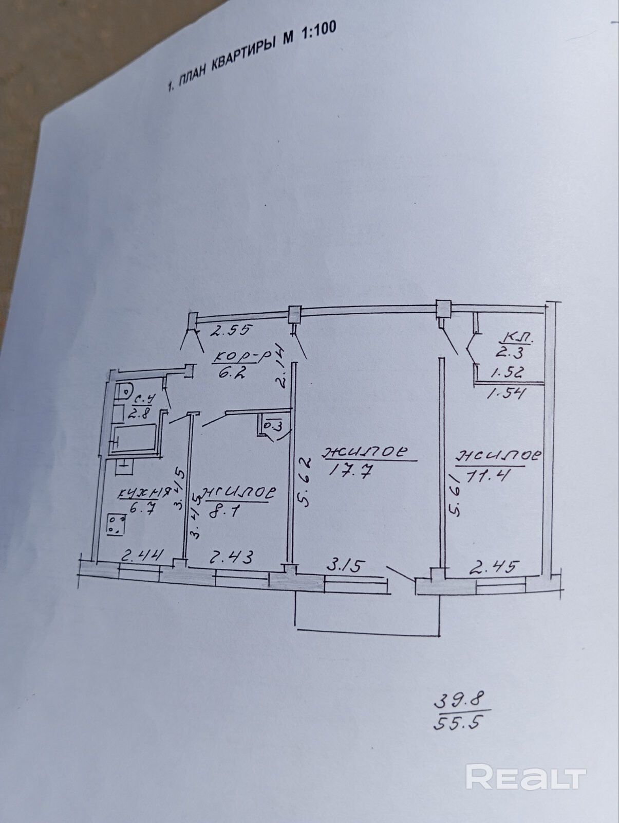 В продаже 3 комнатная квартира по пр-ту Московскому в г. Витебске.
