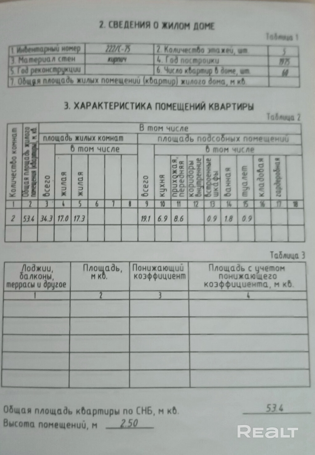 - Площадь жилая