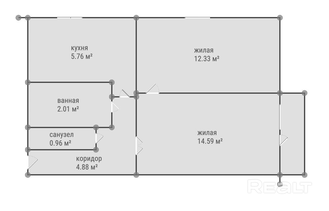 • Комнаты расположены на две стороны, что обеспечивает отличное естественное освещение, хорошую циркуляцию воздуха и удобство расстановки мебели.