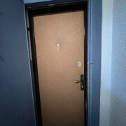 В квартире окна деревянные, пол ДСП, входная дверь металлическая.
