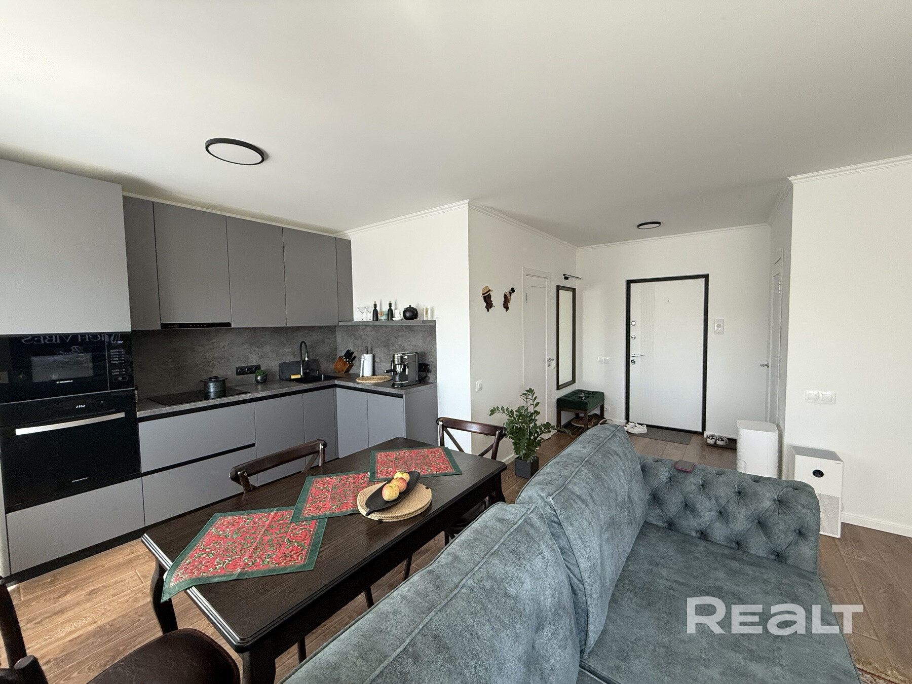 Удобная планировка: гостиная с кухонным оборудованием, спальня, гардеробная.