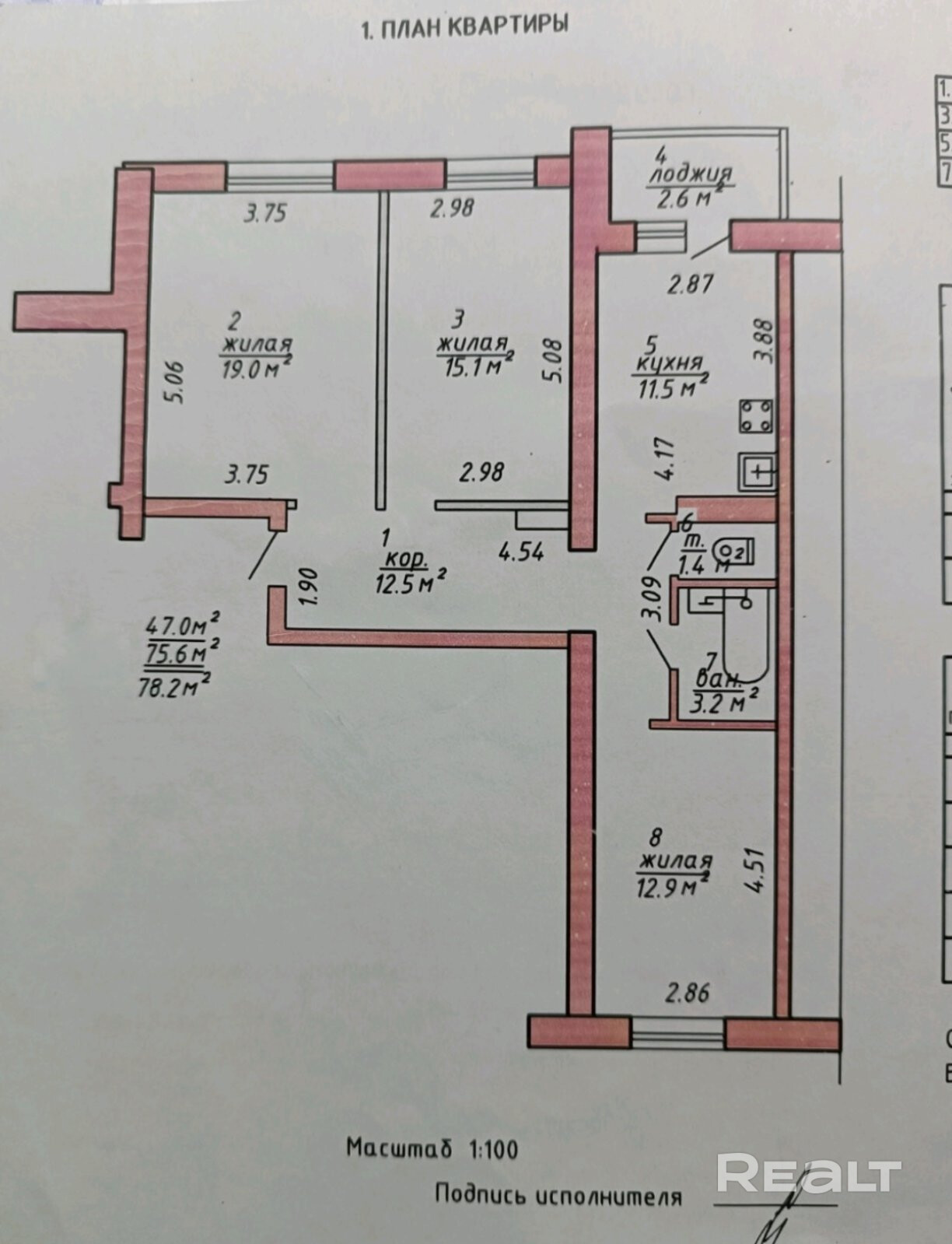 Общей площадью 78.2 м2, жилая 47м2, кухня 11.5м2.