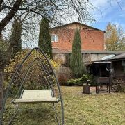 На участке имеется зона для отдыха, газон, мангал, бассейн, качели-гамак , а также плодовые и ландшафтные деревья.