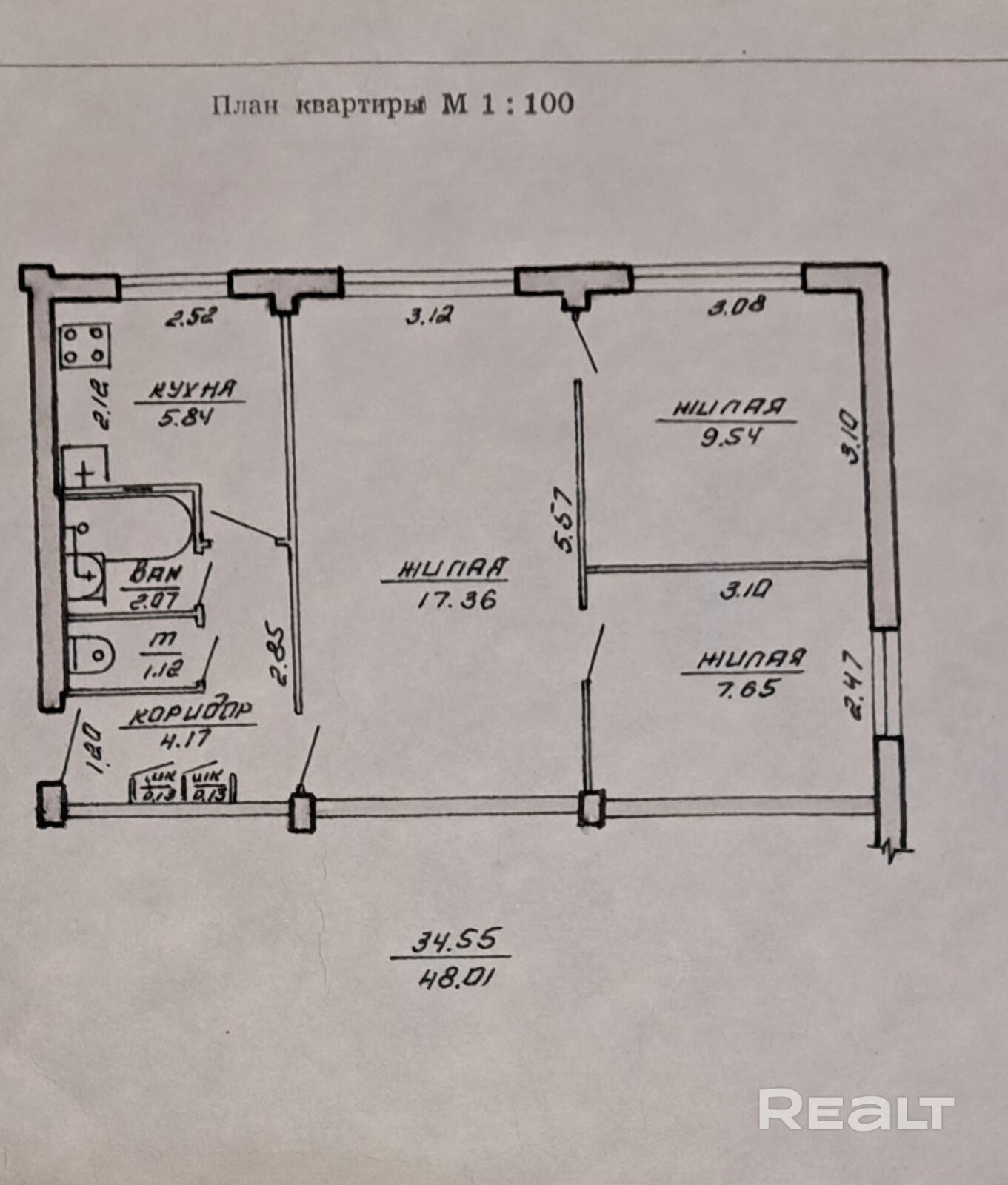 В продаже 3-х комнатная квартира в центре Витебска, микрорайон Юг-1 по проспекту Черняховского.