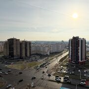 15-ый этаж, позволяет любоваться прекрасным видом на проспект, огнями вечернего Витебска( юго- западная сторона).