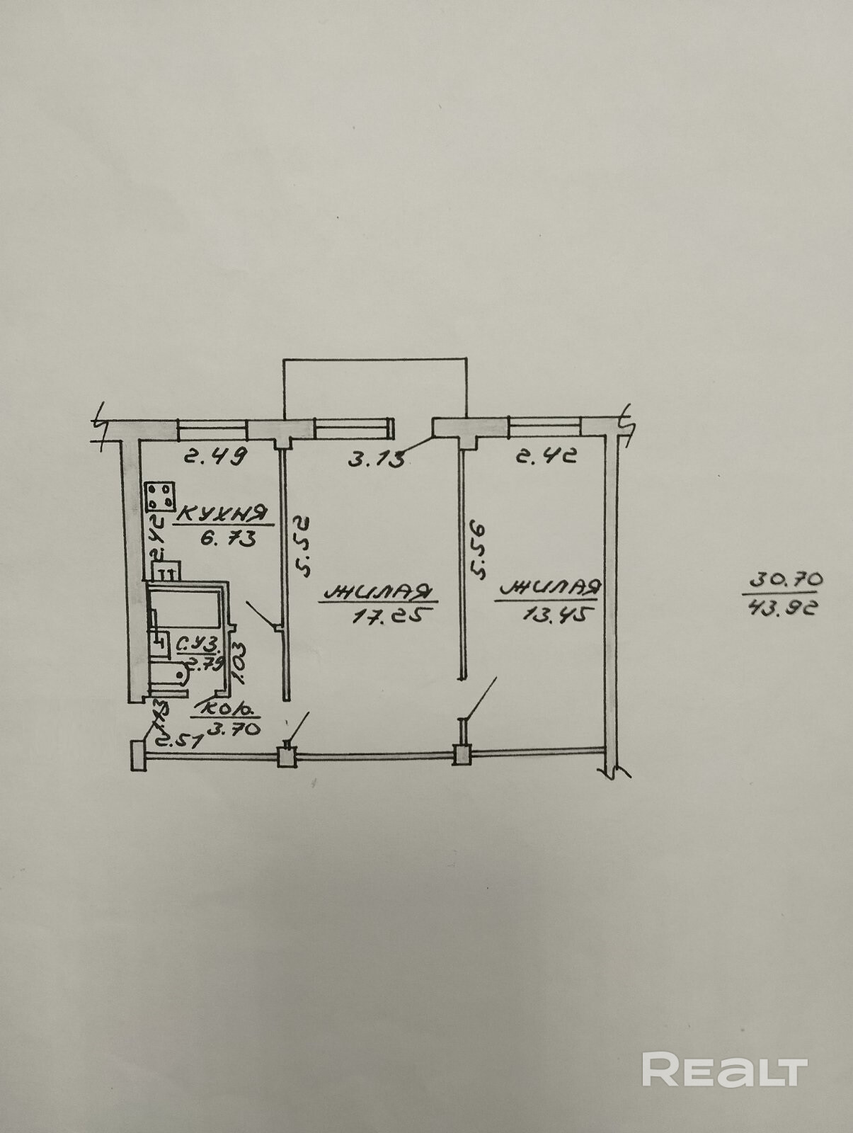 Продается двухкомнатная квартира по адресу: ул. 1-я Змитрока Бядули, 3. Квартира расположена на 3 этаже 5 -этажного панельного дома 1967 г. п. Общая площадь — 43,92 кв.м., жилая — 30,7 кв.м., кухня — 6,73 кв.м. Санузел совмещенный. Балкон застеклен ПВХ и обшит сайдингом. Квартира в обычном жилом состоянии. Установлены окна ПВХ. Пол - линолеум. Остается кухня. Есть подвал. В 2024 году произведен капремонт дома. Заменены канализационные и водопроводные трубы. Хорошее транспортное сообщение. Недалеко парковая зона, река. Звоните для получения дополнительной информации или организации просмотра!