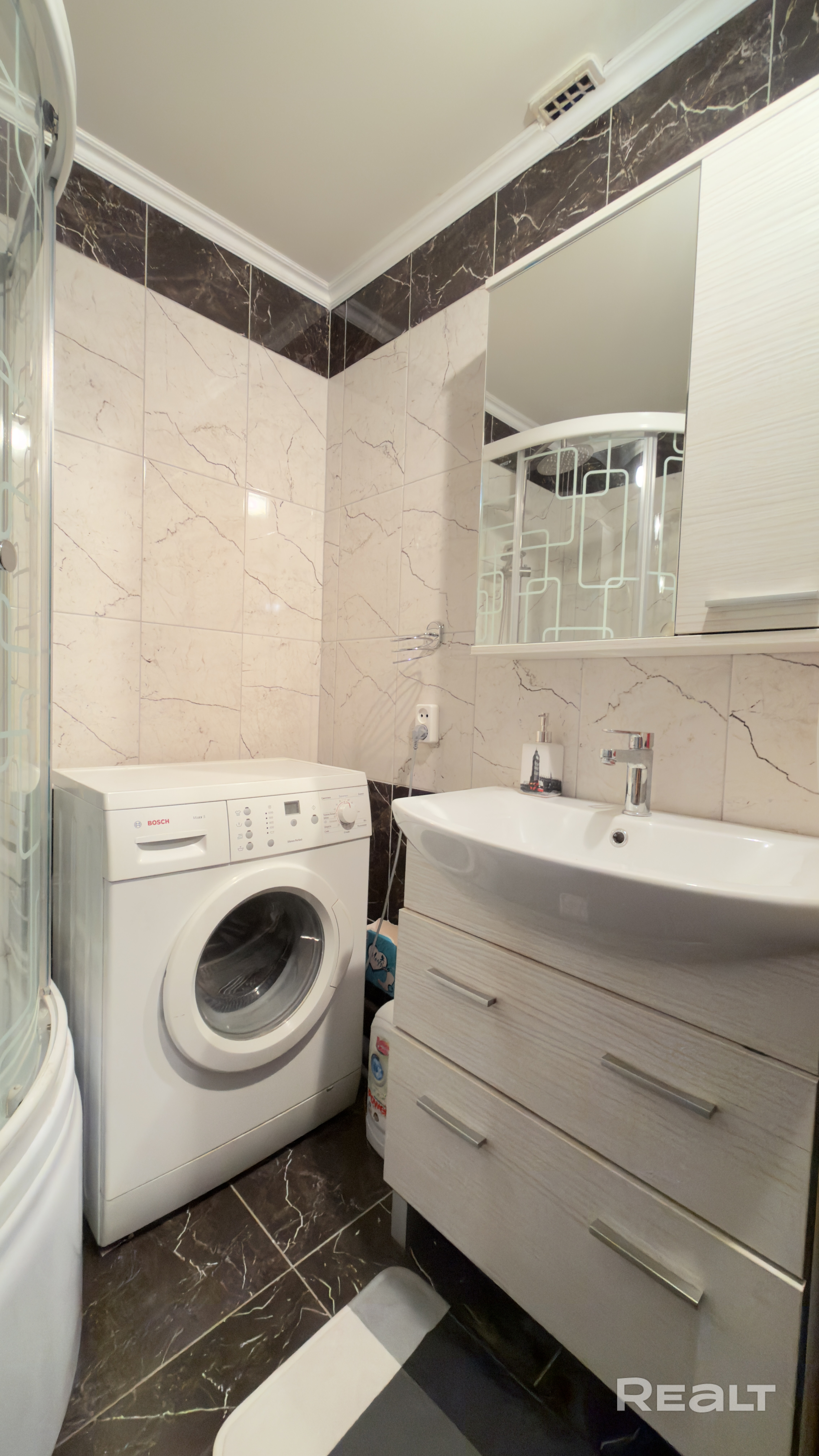 Поменены окна ПВХ, входная металлическая дверь, ламинат на полу, балкон застеклен алюминиевыми раздвижными конструкциями. Раздельный санузел. В ванной комнате установлена душевая кабина и была произведена замена всех сантехнический коммуникаций.