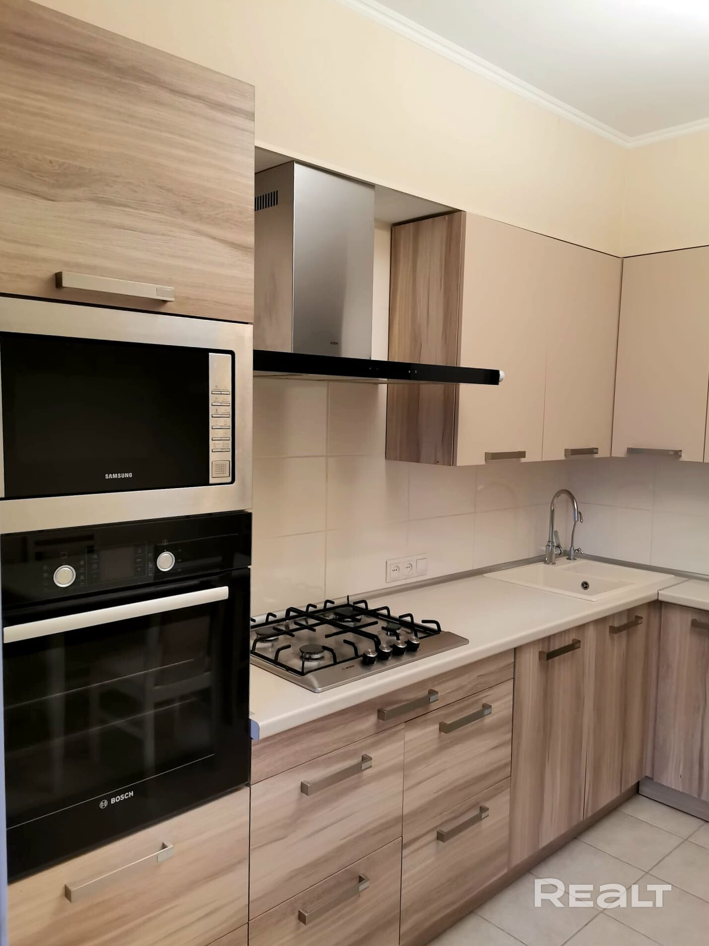Квартира аккуратная, с ремонтом, готова встретить новых владельцев. Вся встроенная мебель и техника - в цене. В кухне посудомоечная машина, варочная поверхность, духовка марки Bosh, вытяжка вытяжка и микроволновая печь Samsung. Остальное - по договорённости. Рядом с домом-детский сад, школа, магазин, до остановки общественного транспорта пешком 10 минут.