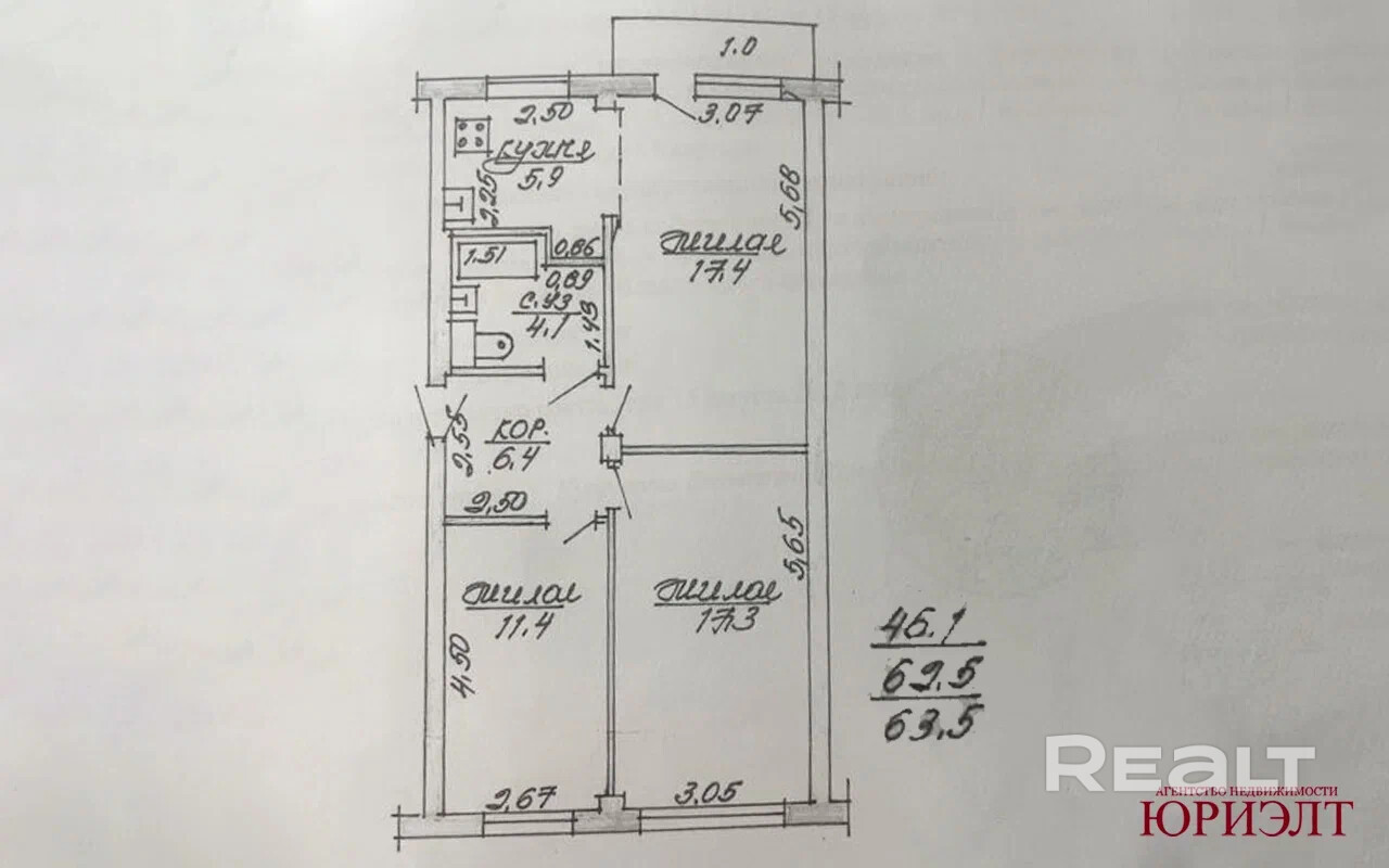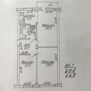 Планировка квартиры одна из самых лучших в своем классе. Общая площадь 63 М2, три жилые комнаты площадью 17 М2, 17 М2 и 11 м2. Таких жилых комнат нет даже в квартирах улучшенной планировки. Одна из комнат совмещена с кухней и с выходом на застеклённый балкон.