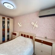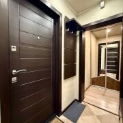 Установлен кондиционер, счётчики на воду и газ. Оборудована просторная гардеробная, встроенная кухня продумана до мелочей и удобна для ежедневного использования. Дополнительный плюс — сигнализация.