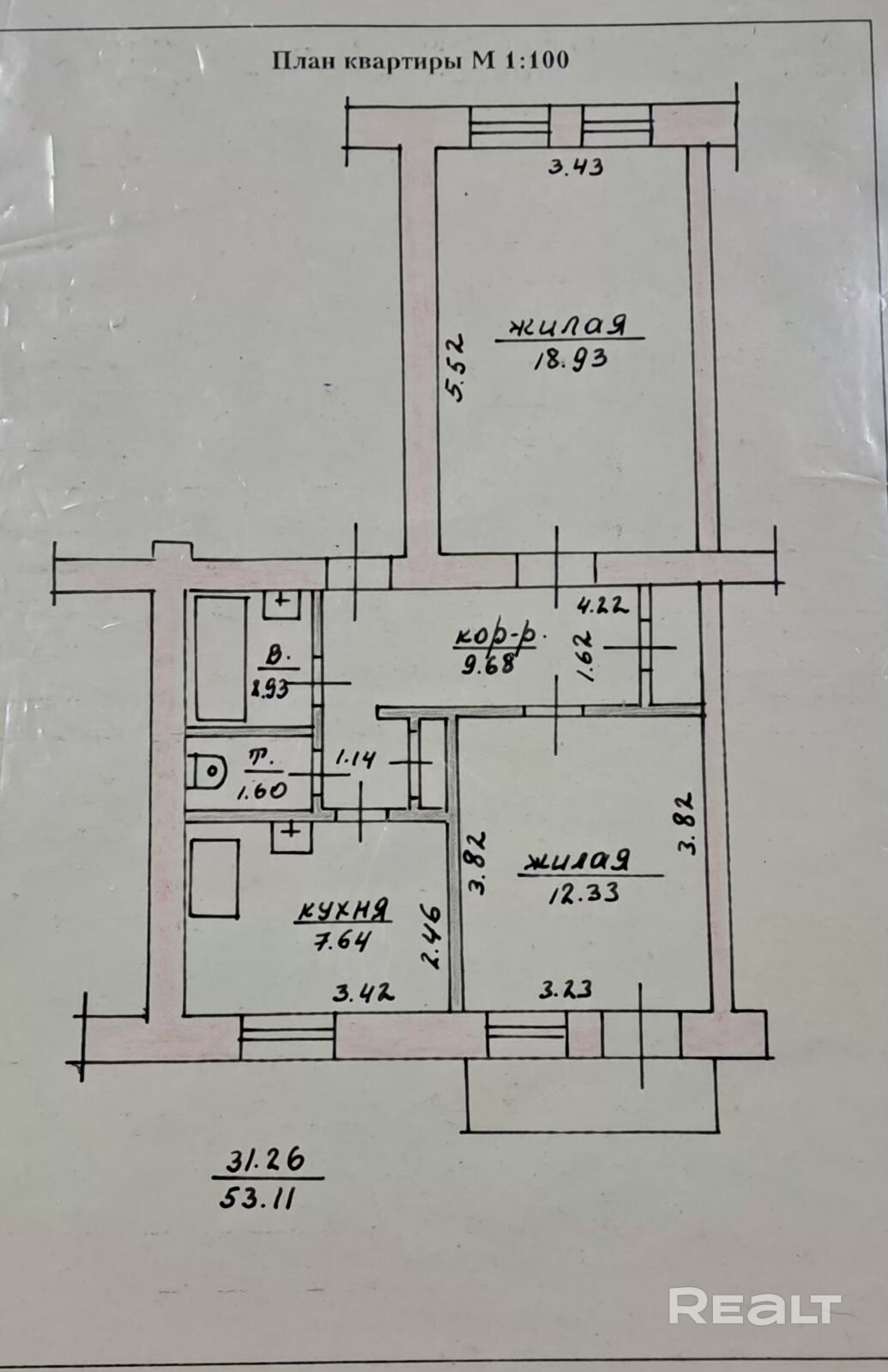 В продаже просторная и светлая 2-х комнатная квартира сталинской эпохи по проспекту Фрунзе в Витебске.