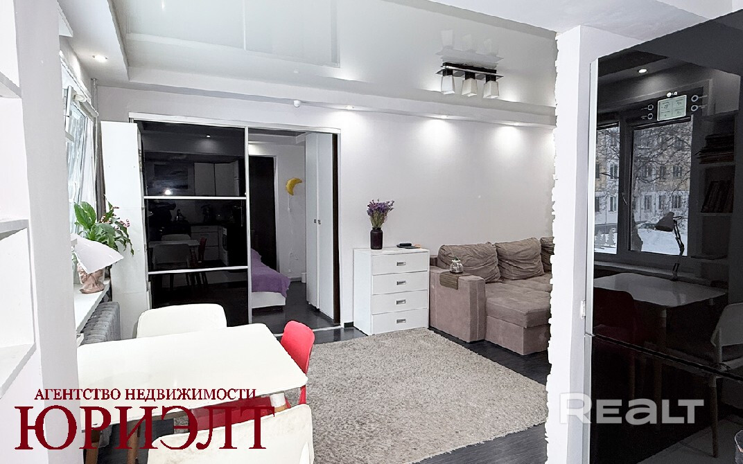 В квартире сделана перепланировка и утверждена, считается как евродвушка большая гостиная с кухонной зоной и отдельная спальня.