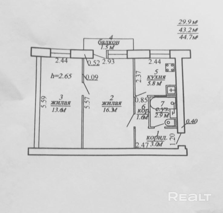 44 м²