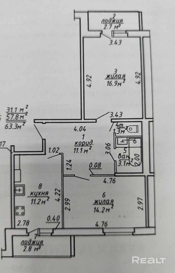 57.8 м²