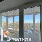 Застекленный балкон и кладовая - гардеробная. Установлены окна ПВХ, потолки натяжные в комнатах, входная дверь металлическая, межкомнатные двери (массив). На полу - ламинат и плитка.