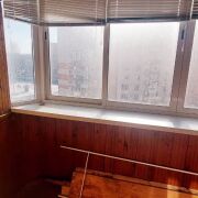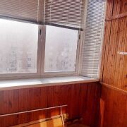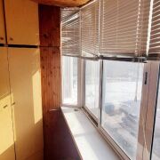 Остекленная лоджия  , раздвижная система окон, обшита вагонкой, со множеством полочек для хоз. нужд.