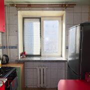 Окна ПВХ, входная металлическая дверь, по всей квартире уложен ламинат, на кухне линолеум.