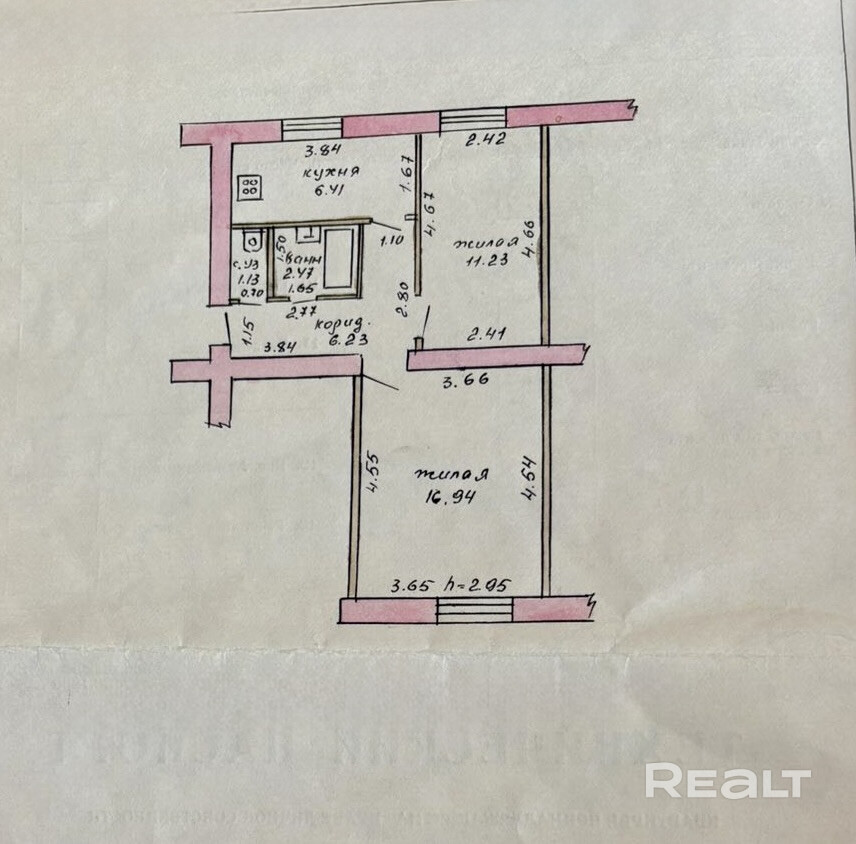 • Жилая площадь: 28.1 кв.м • Кухня: 6.4 кв.м.