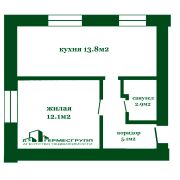 Общая площадь квартиры 33.9 м2, жилая 12.1м2, кухня 13.8 м2.