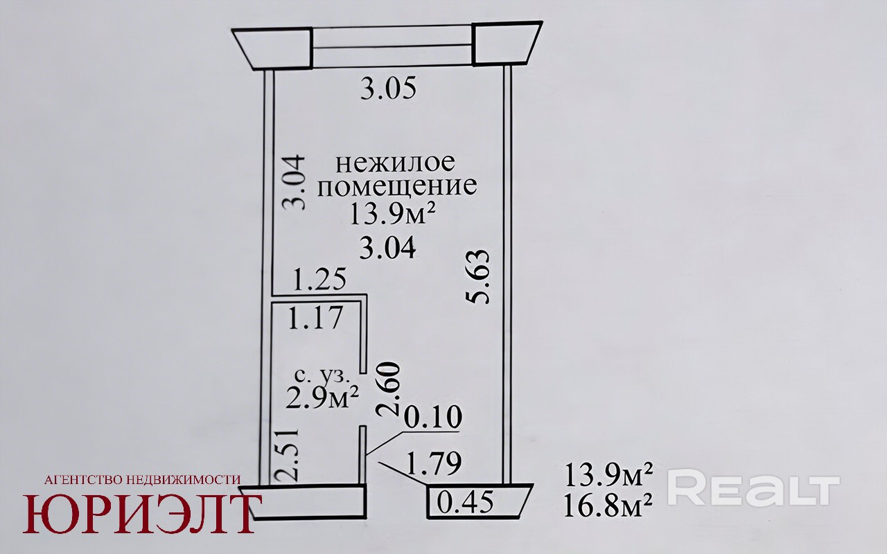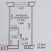 Общая площадь-16,8 кв.м, жилая-13,9 кв.м.