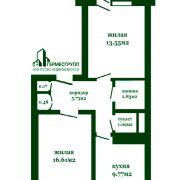 Общая площадь 51.93 м2, жилая 30.16 м2, кухня 9.77 м2.