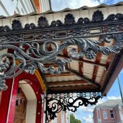 из аутентичных изделий 19 века (базальтовые ступени и козырек из чугуна в виде виноградной