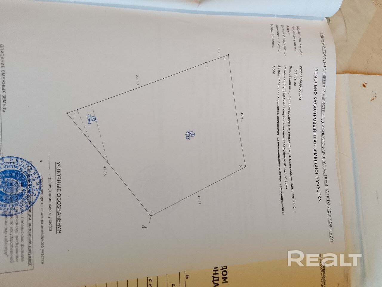 - Площадь участка