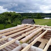 Недостроенный деревянный дом на первой береговой линии озера.