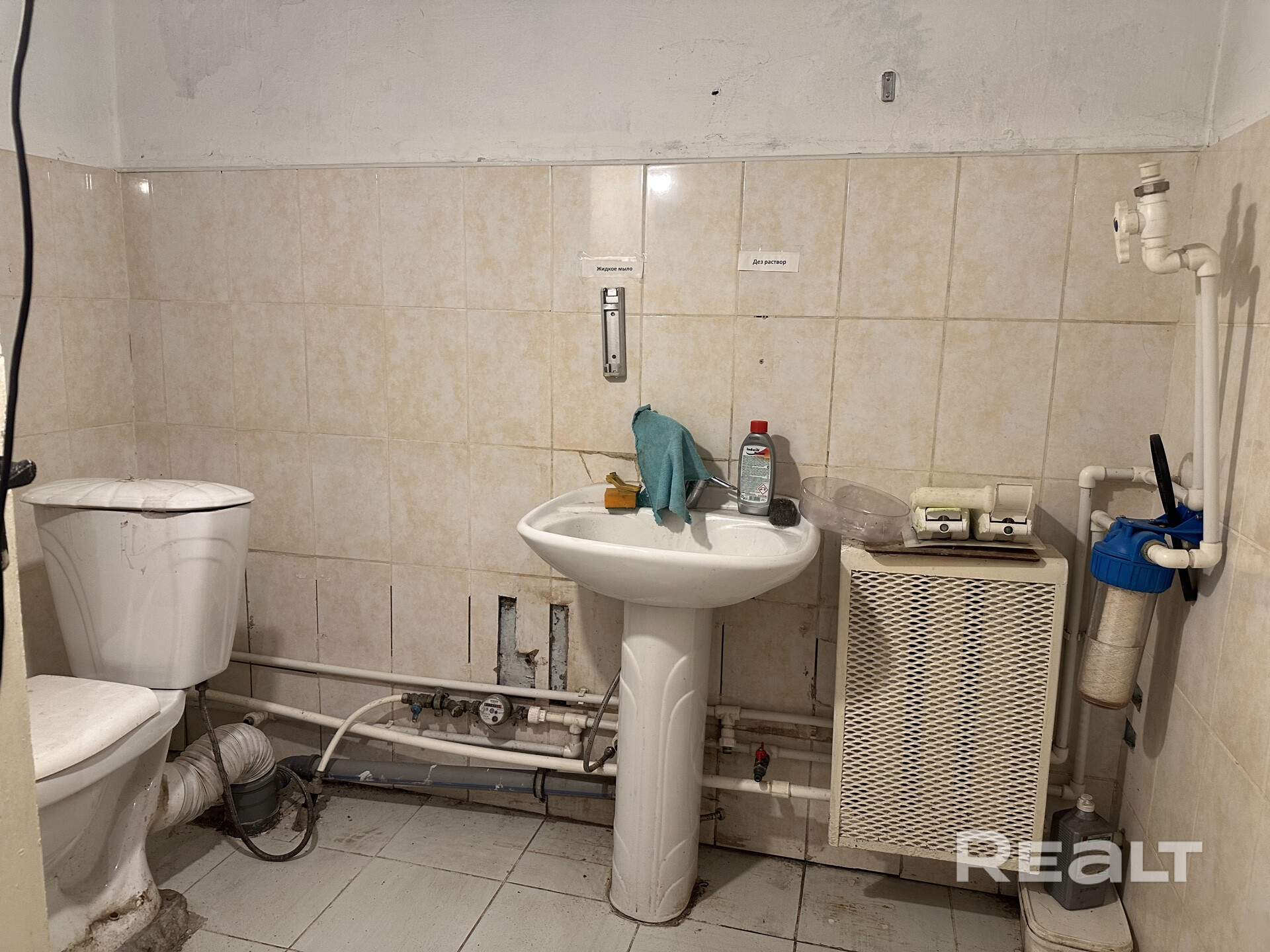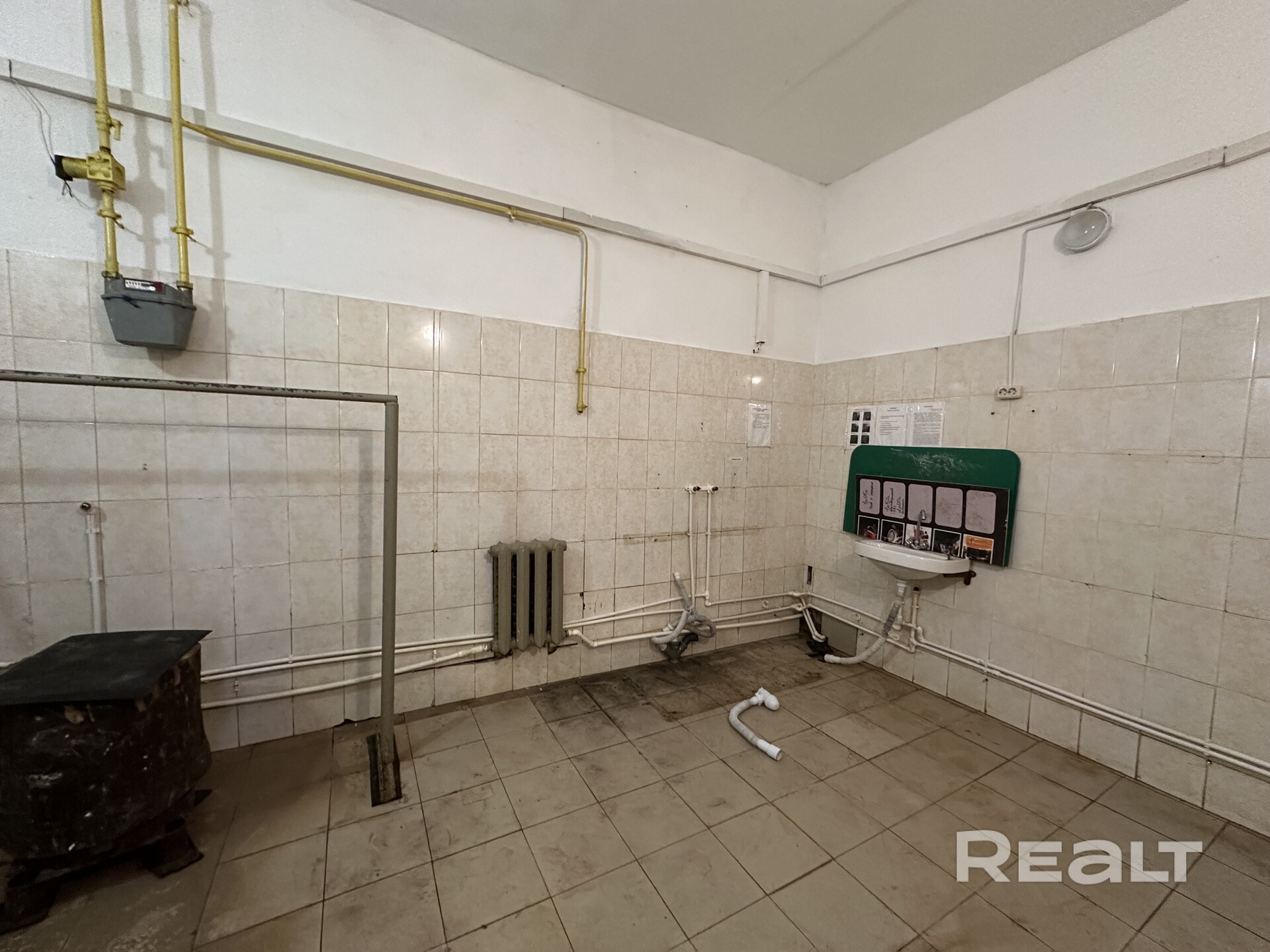Стены блоки газобетонные, крыша асбестоцементный волнистый лист. В здании сделан ремонт, стоят окна ПВХ, на полу плитка, продумана система освещения, высота потолков от 3 м. Электричество 220Вт, пожарно-охранная сигнализация, водоснабжение центральное, отопление газовое (установлен двухконтурный котел),телефонные линии, компьютерная сеть, счётчики, подведен газ и установлен газовый счетчик.