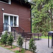 Домик №4 (коттедж) – 171,5 м.кв. (16 человек) новое строительство 2017 год. Коттедж разделен на 2 половины с отдельными входами и выходами в зону барбекю. В каждой половине: 1 этаж - гостиная, барная стойка, обеденная зона, мини-кухня, санузел с душевой кабиной; 2 этаж – 2