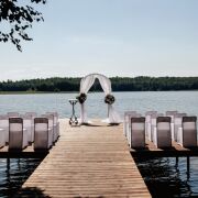 находится в лесном массиве на берегу озера Девинское. Невероятно красивая