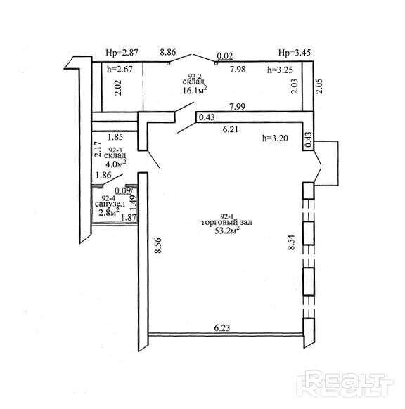 - Смежное помещение, также продается, поэтому есть возможность, объединить в одно помещение площадью 134,2 кв.м.