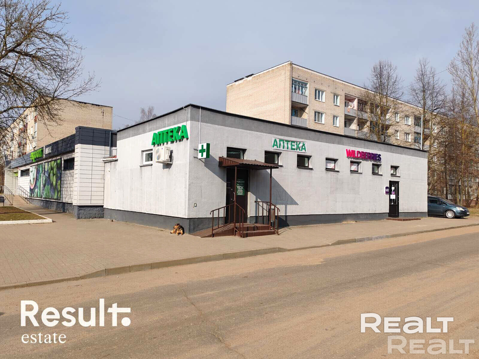 Помещения соседствует с супермаркетом "Евроопт"и Аптекой. Также, в шаге находится парикмахерская. Совокупность всех этих фактов, благоприятно влияет на пеший трафик, а с учетом расположения объекта, прямо на въезде в спальный район, в свою очередь обеспечивает уже автомобильный трафик.